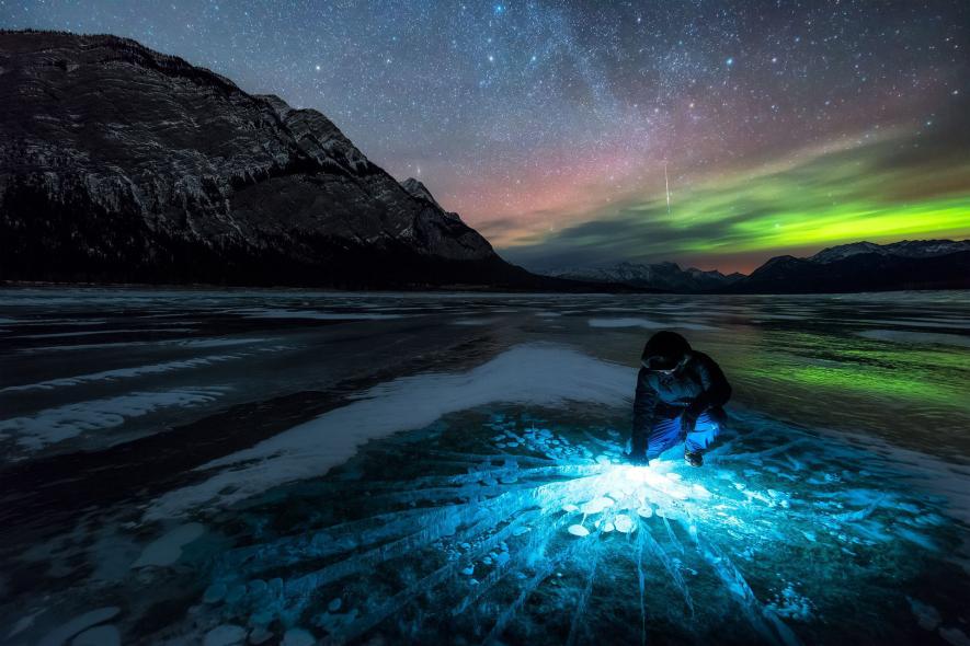 นครนิวยอร์ก “อสุนีบาตฟาดใส่ย่านโลเวอร์แมนแฮตตัน ขณะที่พายุฤดูร้อนเคลื่อนเข้าใกล้เส้นขอบฟ้าของนครนิวยอร์กที่สว่างไสวด้วยแสงจันทร์” Photograph by Christopher Markisz, National Geographic Your Shotกรุงเทพฯ “เมื่อตกกลางคืนในกรุงเทพฯ ตลาดที่มีสีสันสดใสแห่งนี้ก็มีชีวิตชีวาขึ้นมาด้วยแสงและสี แผงลอยสีรุ้งเจิดจ้ามากเมื่อมองจากด้านบน” Photograph by Kajan Madrasmail, National Geographic Your Shotลอนดอน สหราชอาณาจักร “เสี้ยวชีวิตของกรุงลอนดอนแวดล้อมด้วยสัญลักษณ์ซึ่งเป็นที่จดจำมากที่สุดไม่กี่อย่าง ได้แก่ สะพานทาวเวอร์บริดจ์และรถบัสสองชั้นสีแดง” Photograph by Julia Wimmerlin, National Geographic Your Shotเกียวโต ญี่ปุ่น “นั่นเป็นคืนหนึ่งในเดือนมกราคม หิมะตกหนักเป็นประวัติการณ์ในเมืองเกียวโต หิมะปกคลุมเมืองทั้งเมือง และผมถ่ายภาพทิวทัศน์เป็นสีเดียวเพื่อแสดงว่าบรรยากาศเงียบเชียบเพียงใด วัดที่มีหมอกปกคลุมคือวัดโทะจิ ซึ่งได้รับการขึ้นทะเบียนเป็นแหล่งมรดกโลก” Photograph by Takuya Higuchi, National Geographic Your Shotนครนิวยอร์ก “รถแท็กซี่จอดอยู่บนถนนปาร์กอเวนิวนานพอที่จะสร้างจุดเด่นให้ภาพนี้” Photograph by Philip Pecoulas, National Geographic Your Shotฮ่องกง “ในฤดูใบไม้ผลิ ยอดเขาวิกตอเรียพีกของฮ่องกงเป็นสถานที่ที่เหมาะจะให้ช่างภาพมาเก็บภาพทะเลหมอกรอบๆอ่าววิกตอเรีย อย่างไรก็ตาม มีเพียง 2-3 ครั้งในแต่ละปีที่จะถ่ายภาพนี้ได้ ในคืนนั้น หมอกหนาปกคลุมตึกต่างๆเกือบทั้งหมด ตึกไอซีซีมอลล์ซึ่งสูงที่สุดเป็นเพียงตึกหลังเดียวที่ตั้งตระหง่านอยู่ท่ามกลางหมอกหนานี้” Photograph by CP Lau, National Geographic Your Shotย่านชินจุกุ ญี่ปุ่น “แสงจากตึกต่างๆเจิดจ้ามาก จนผมต้องใช้ฟิลเตอร์ลดแสง (neutral density filter) เพื่อลดความเร็วชัตเตอร์ นี่ก่อให้เกิดความรู้สึกถึงการเคลื่อนที่ของคนเดินถนน ทำให้ผู้ชมภาพถ่ายสัมผัสประสบการณ์ความวุ่นวายของชีวิตในกรุงโตเกียว” Photograph by Richard Vandegriend, National Geographic Your Shotโยะโกะฮะมะ ญี่ปุ่น “ภาพถ่ายทิวทัศน์ยามค่ำคืนของเมืองโยะโกะฮะมะภาพนี้ถ่ายจากตึกแลนด์มาร์ก เราเห็นตึกระฟ้าและชิงช้าสวรรค์ในโยะโกะฮะมะ ทิวทัศน์ยามค่ำคืนของกรุงโตเกียวในระยะไกล มีงานเทศกาลที่เรียกว่า Port Opening Festival หรือเทศกาลเฉลิมฉลองการเปิดท่าเรือ ในวันที่ถ่ายภาพพอดี เพราะฉะนั้น เราจึงสามารถเพลิดเพลินกับพลุที่สวยงาม” Photograph by Makoto Igari, National Geographic Your Shotรัฐแอลเบอร์ตา แคนาดา “ภาพนี้ถ่ายที่ทะเลสาบเอบราแฮมในรัฐแอลเบอร์ตา ประเทศแคนาดา โดยปกติที่นี่จะกลายเป็นน้ำแข็งและกลางคืนมีลมแรง ผมกำลังเดินบนทะเลสาบที่กลายเป็นน้ำแข็งตามลำพัง และจู่ๆก็พบชิ้นส่วนน้ำแข็งที่สวยงามนี้ ซึ่งเหมือนมีการระเบิดอยู่ข้างใน พร้อมกับมีฟองอากาศที่แข็งตัวนับพันอยู่ข้างใต้ ผมส่องไฟฉาย