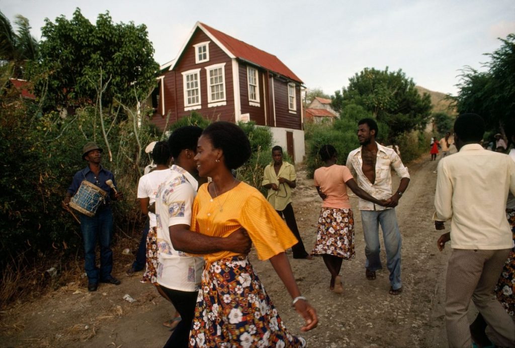 คู่รักหลายคู่กำลังเต้นรำบนถนนใน Carriacou หนึ่งในหมู่เกาะ Grenadine ภาพนี้เดิมทีปรากฏในฉบับเดือนกันยายน 1979 พร้อมกับเรื่องราวของเซนต์วินเซนต์และเกรนาดีนส์ ประเทศในภูมิภาคแคริบเบียน