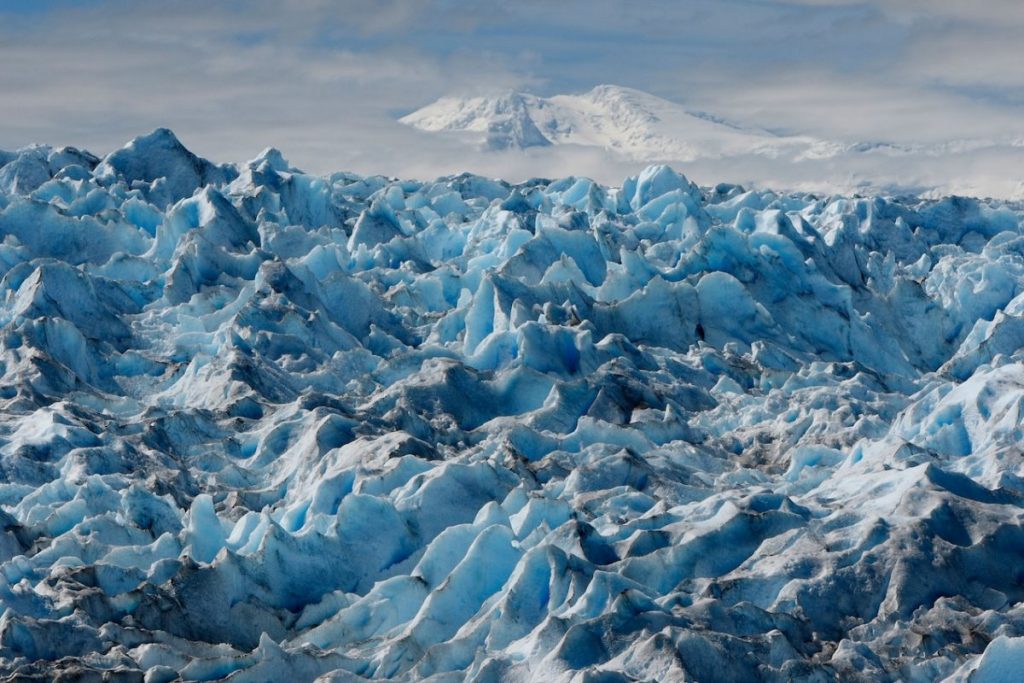 Lautaro ภูเขาไฟที่ยังคุกรุ่นอยู่เหนือพื้นผิวของธารน้ำแข็ง Pío XI ทางตอนใต้ของชิลี ทุ่งน้ำแข็งในชิลีแห่งนี้เป็นหนึ่งในพื้นที่น้ำแข็งนอกเขตขั้วโลกที่ใหญ่ที่สุดในโลก