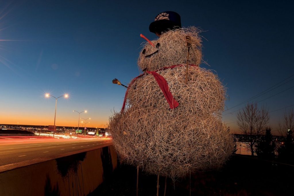 เรื่องจากฉบับธันวาคม 2013 บอกเล่าเรื่องราวทัมเบิลวีด พืชเอกลักษณ์ของอเมริกาตะวันตก ในภาพนี้ ตุ๊กตาหิมะทำจากทัมเบิลวีดสูง 13 ฟุต มองเห็นจากทางหลวงระหว่างรัฐ Interstate 40 ในเมือง Albuquerque มลรัฐนิวเม็กซิโก