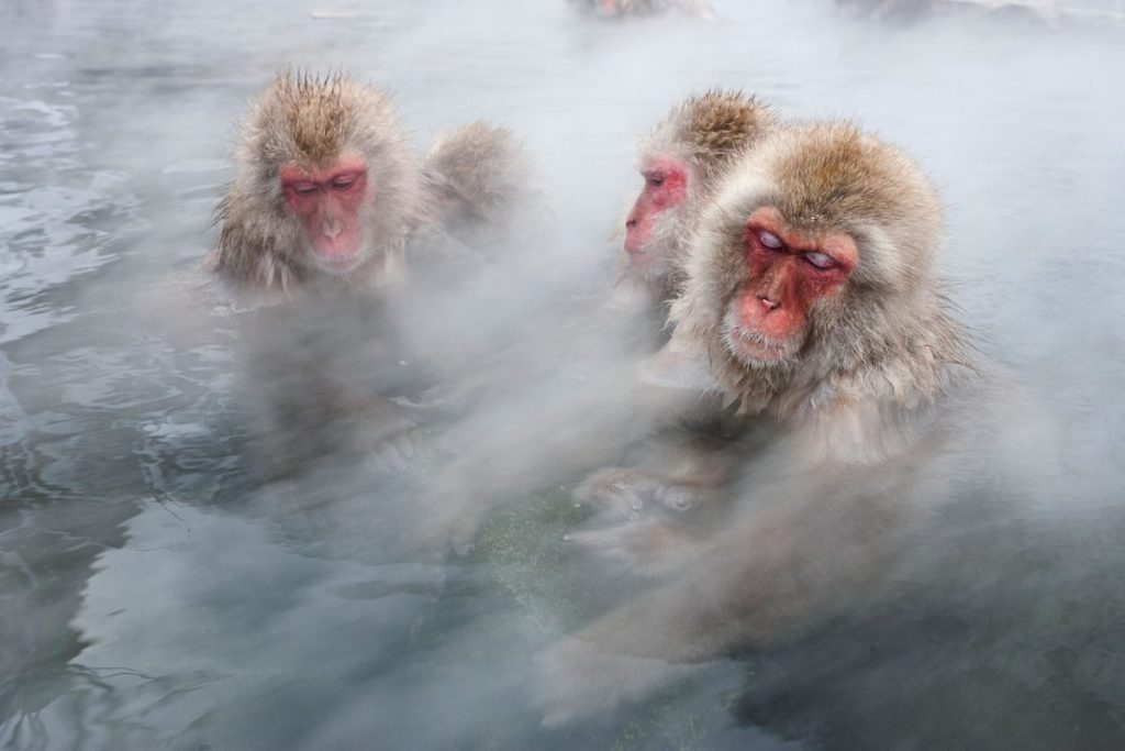 ณ อุทยานแห่งชาติโจชิน’เอตสึ โคเกนของญี่ปุ่น ลิงหิมะผ่อนคลายในบ่อน้ำพุร้อนธรรมชาติ ที่ซึ่งอุณหภูมิอากาศต่ำกว่าจุดเยือกแข็ง แต่อุณหภูมิน้ำสูงกว่า 100 องศาฟาเรนไฮต์
