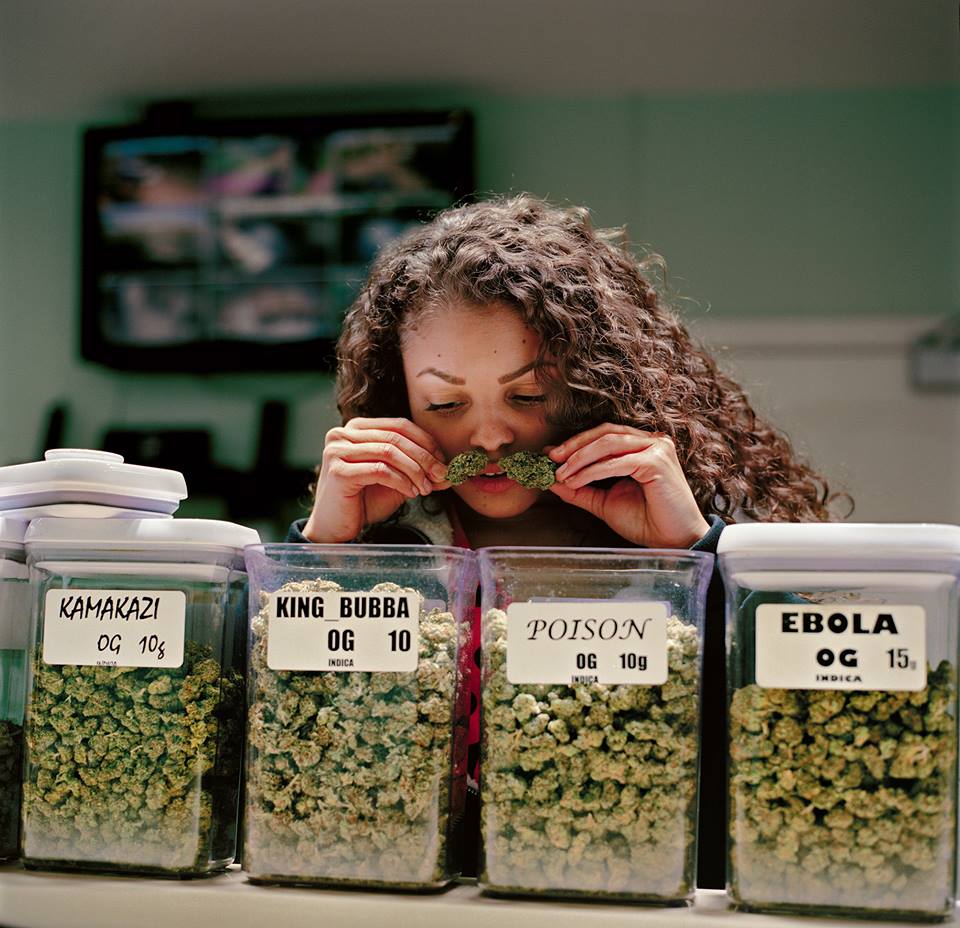 ที่สถานจ่ายกัญชาโนโฮส์ฟายเนสต์ใน ลอสแอนเจลิส ดามาริส ดิแอซ ตรวจสอบกลิ่นและความเหนียวของผลิตภัณฑ์ การผสมข้ามพันธุ์ทำให้เกิดสายพันธุ์ลูกผสมทรงพลังซึ่งมีสารทีเอชซีที่ออกฤทธิ์ต่อจิตประสาทปริมาณสูงกว่าเมื่อหลายสิบปีก่อนมาก เจ้าหน้าที่ด้านสาธารณสุขพากันวิตกกังวลเพราะมีหลักฐานที่แสดงว่า การสูบกัญชาสายพันธุ์ที่มีทีเอชซีสูงเป็นเวลานานจะส่งผลกระทบต่อพัฒนาการของสมอง